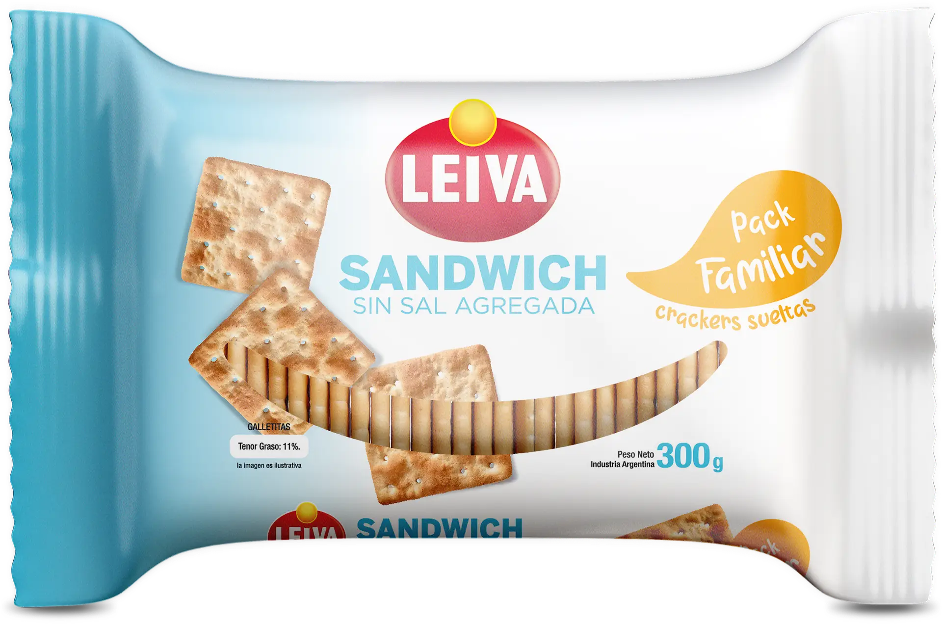 LA CAJA CONTIENE 16 PAQUETES DE GALLETITAS SANDWICH SIN SAL AGREGADA LEIVA FAMILIAR. (16 paquetes x 300 gr.)