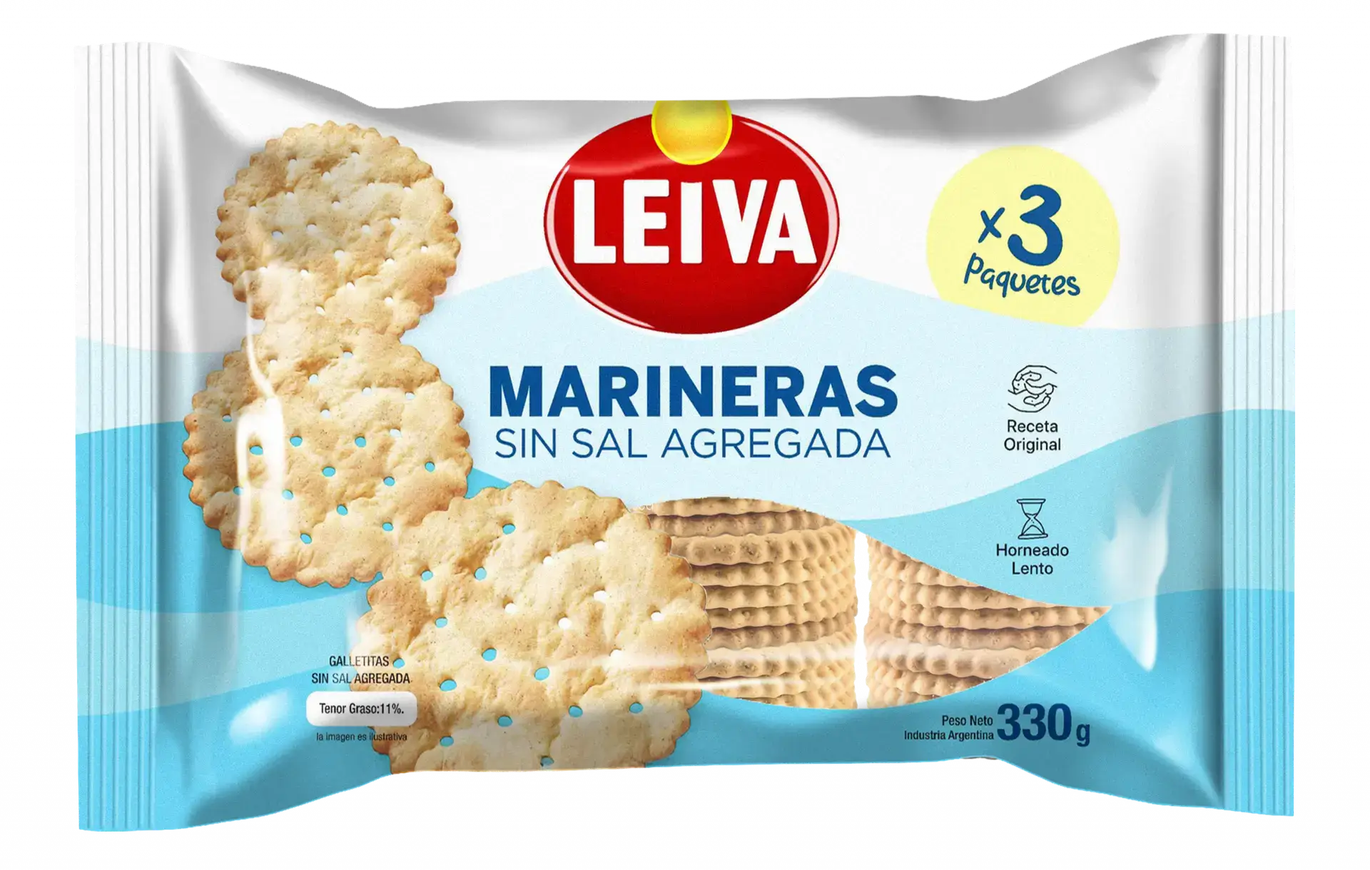 Elegí las Galletitas Marineras Sin Sal Agregada Leiva Tripack y disfrutá de un producto simple, crocante y versátil, pensado para una alimentación más consciente, con la calidad que distingue a Leiva.