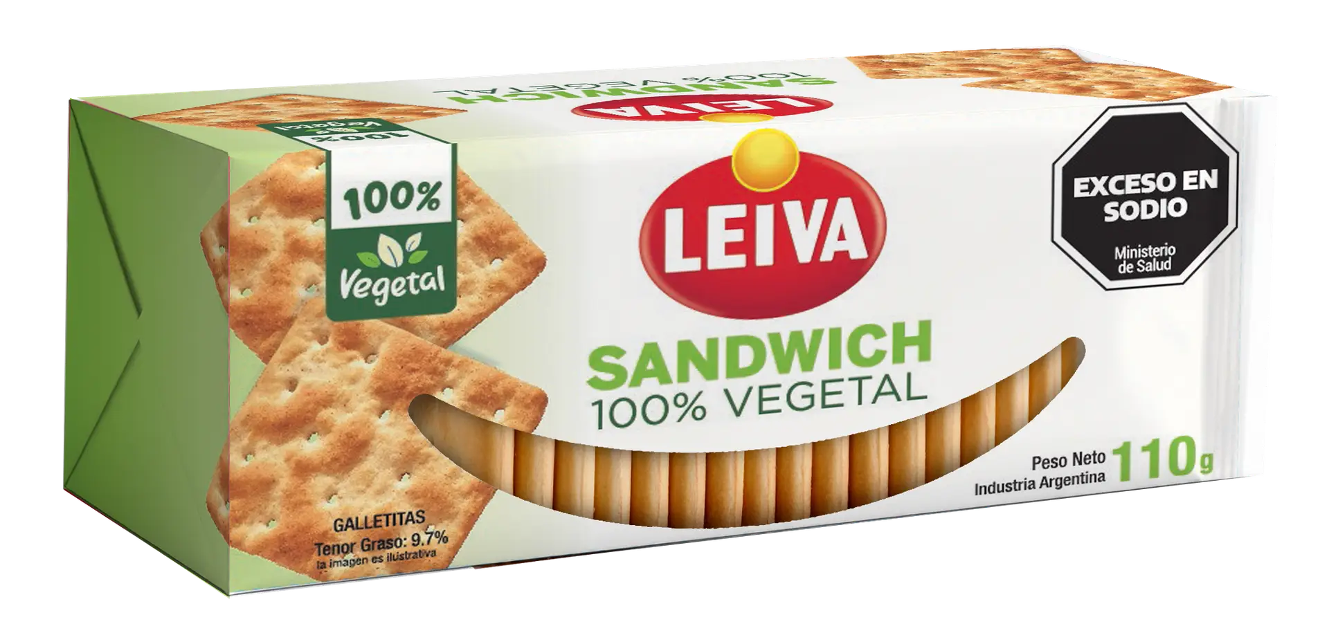 Las Sandwich 100% Vegetal Leiva son las galletitas de agua de toda la vida en su versión sin ingredientes de origen animal. Ademas de ser más livianas que la receta clásica, son aptas para vegetarianos y veganos.