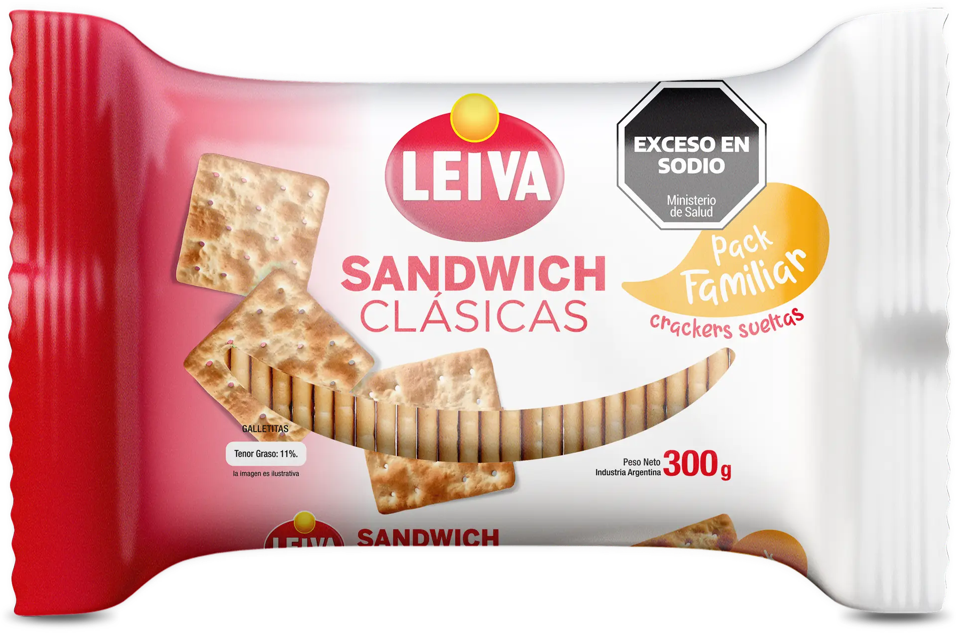 LA CAJA CONTIENE 16 PAQUETES DE GALLETITAS SANDWICH 100% CLÁSICAS LEIVA FAMILIAR. (16 paquetes x 300 gr.)