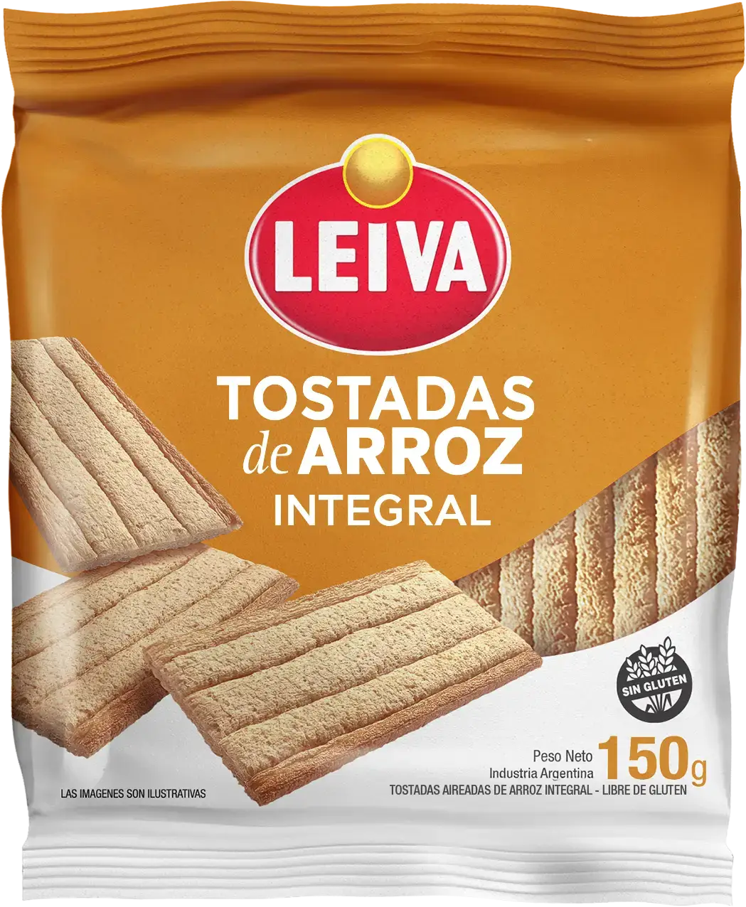 Las Tostadas de Arroz 100% Integrales Leiva son pensadas para quienes buscan una opción sin TACC, sin gluten y elaborada con arroz integral.