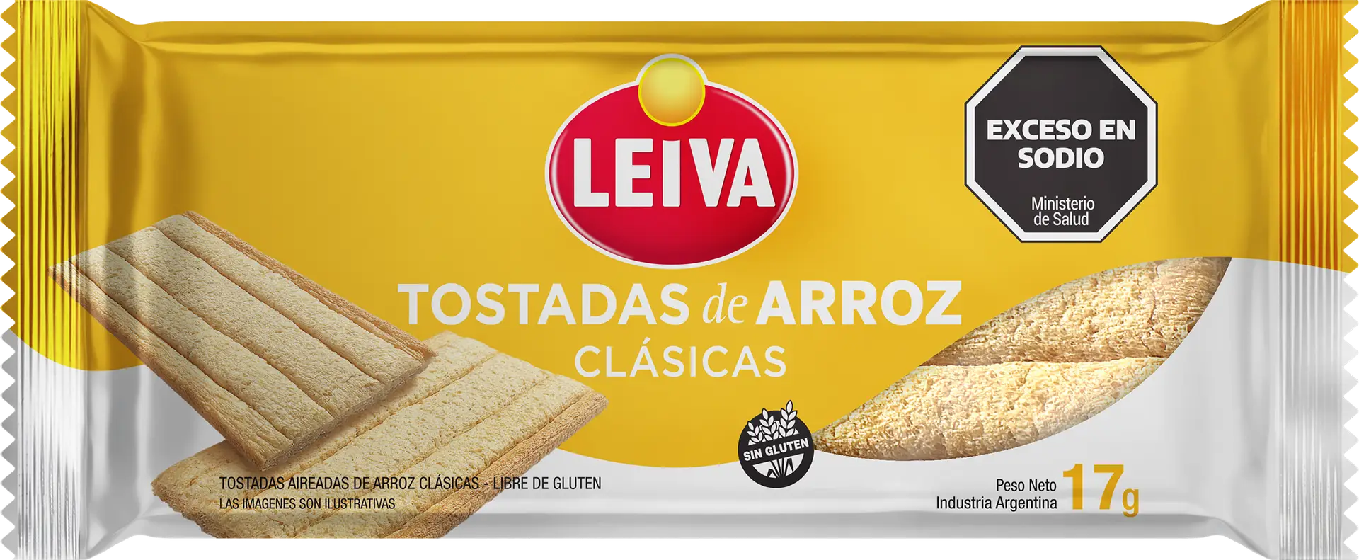 Tostadas de arroz clásicas Leiva SIN TACC. Opción sin gluten para instituciones, viandas escolares, colaciones y consumo diario.